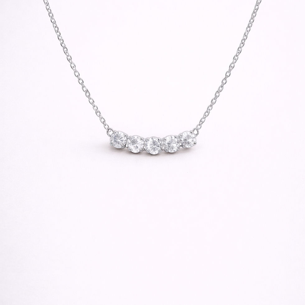 במרכז השרשרת משובצים חמישה זרקונים בשורה מעוצבת בצורת קשת, המעניקים לתכשיט מראה נוצץ, עדין ואלגנטי.